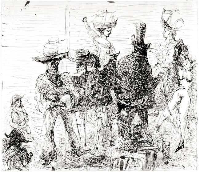 Zwei Männer in Betrachtung des MondesFeder in Tusche